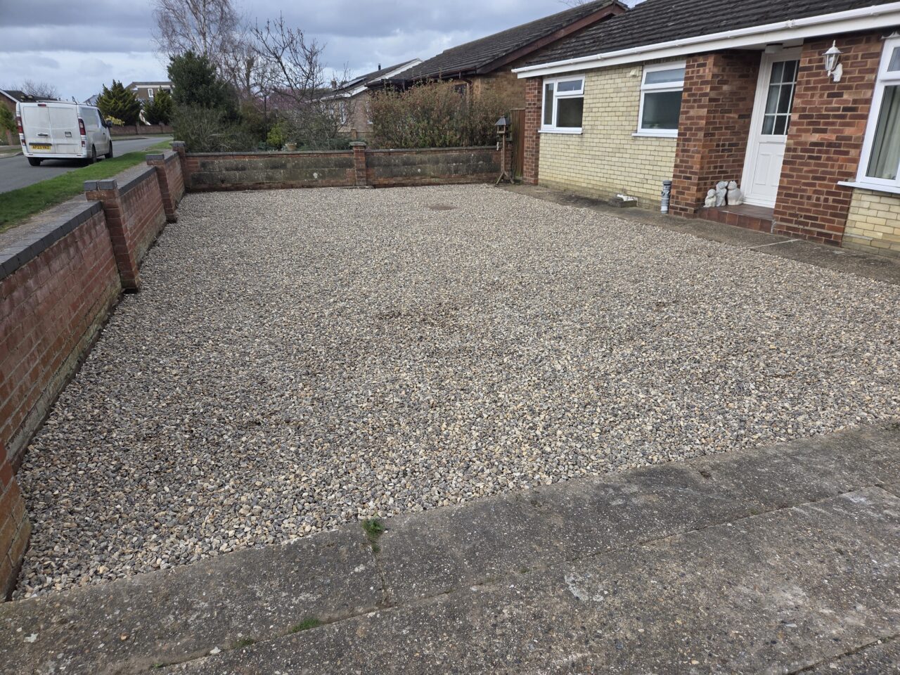 We carried out a full excavation and installed a strong, well-compacted sub-base to support a new 20mm gravel surface, ensuring durability and effective drainage.