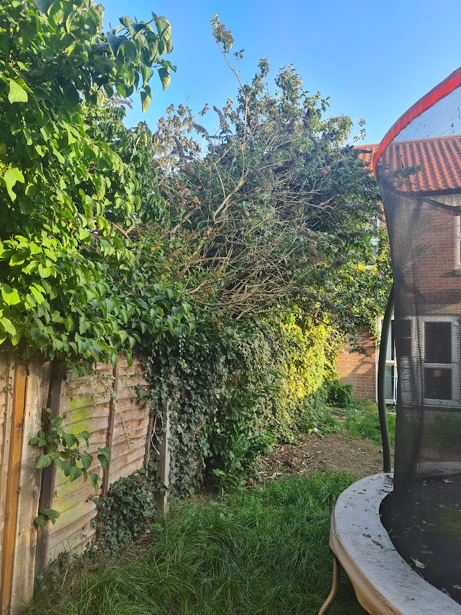 This project required us to remove ivy from the fencing due to causing damage to the fence. We also trimmed any overhanging bushes. Once all hedges were trimmed and ivy removed, we rotavated the garden in preparation for re seeding the garden.